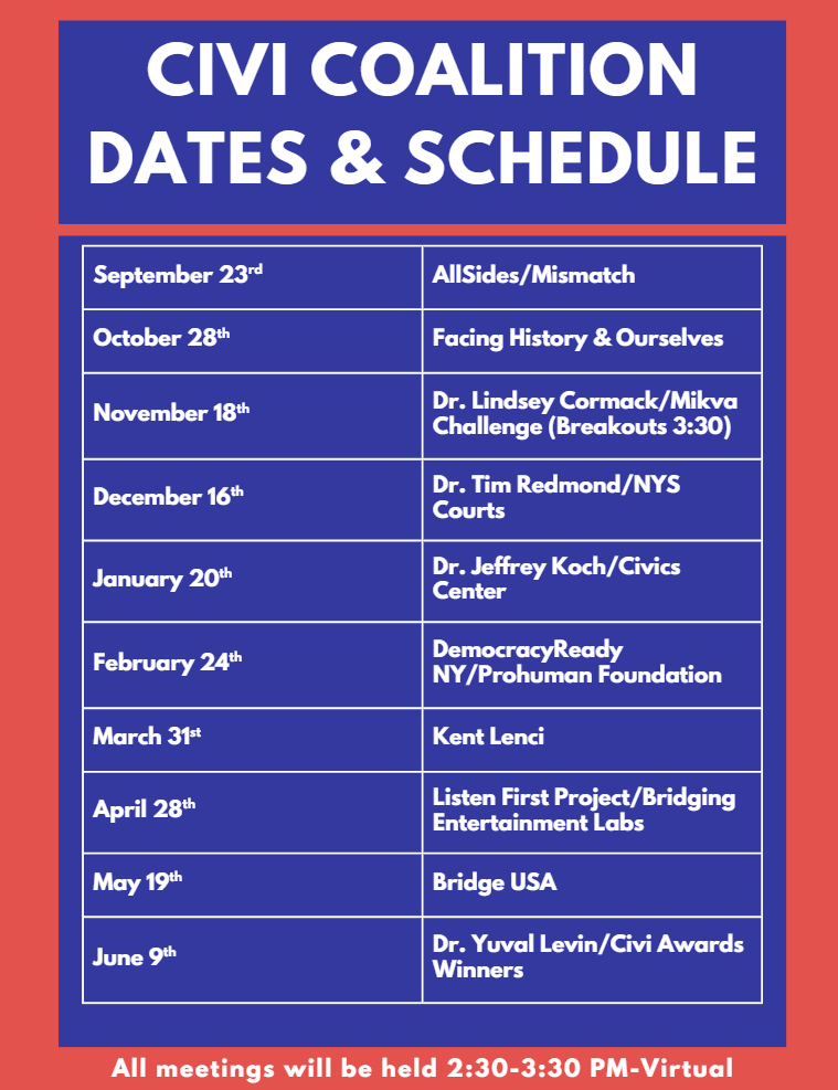Building on this success, the Civi Coalition supports educators committed to bridging divides and fostering constructive conversations in today’s polarized world. As we near America’s 250th anniversary, the Coalition remains dedicated to preparing students as active participants in our democracy. Join us in shaping the next generation of engaged citizens. Please check out the “Who We Are” page for more information.